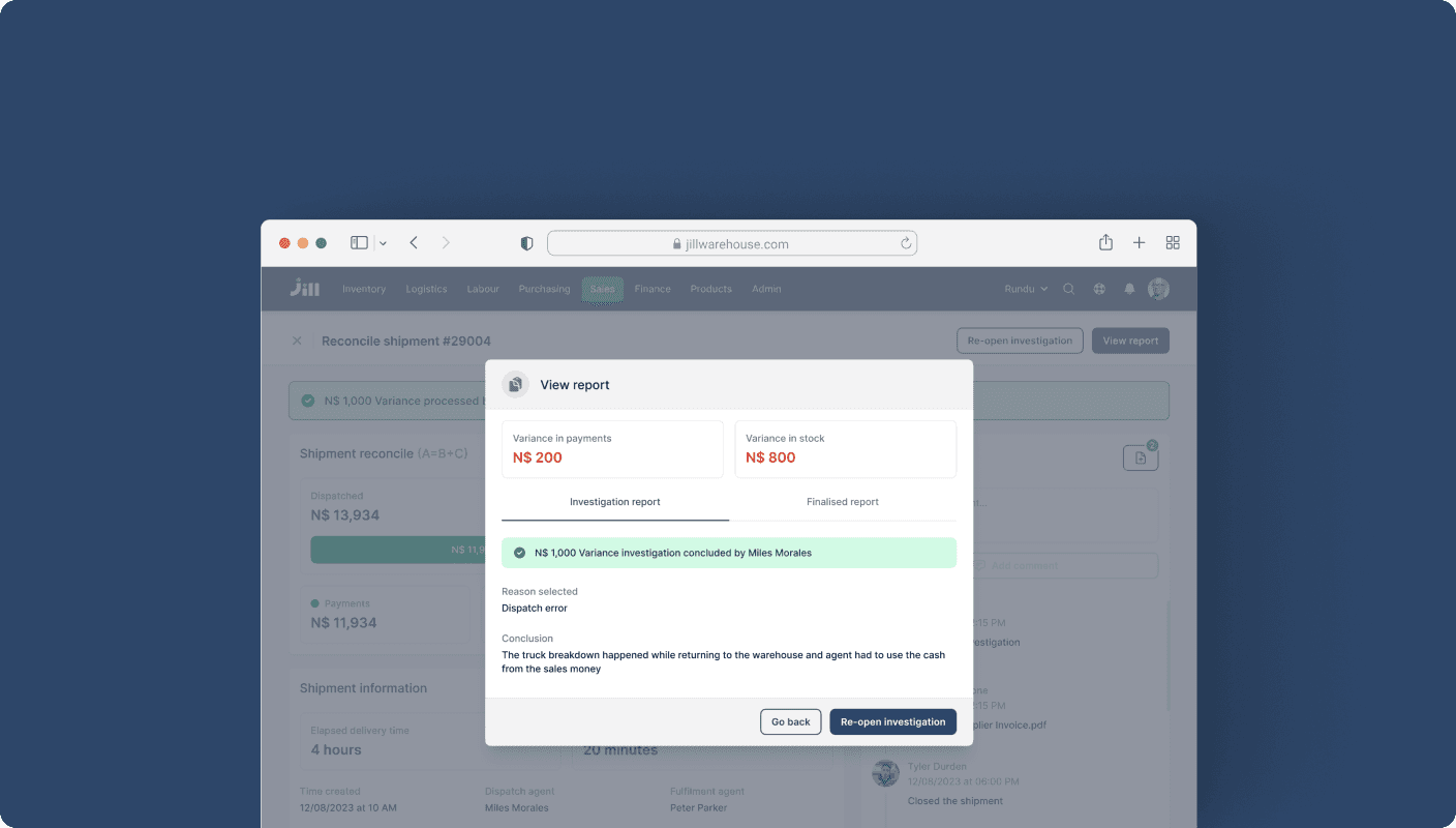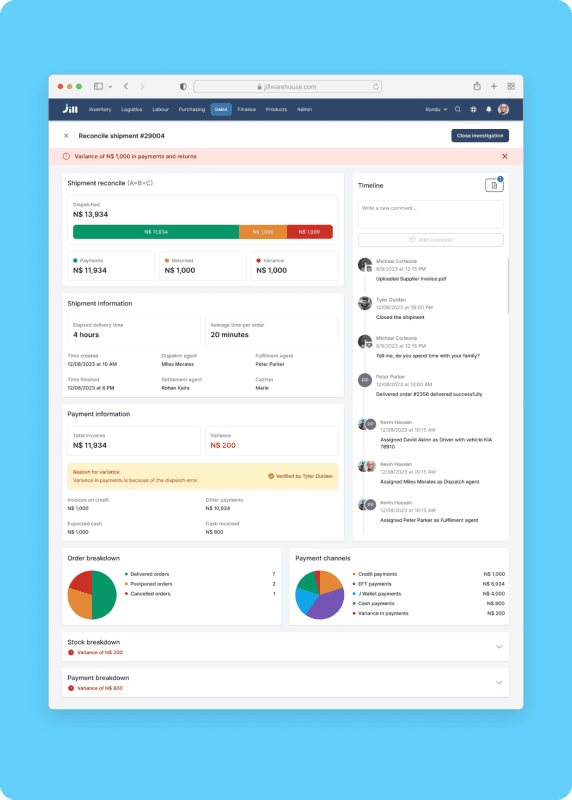 Snapshots from Jill, The warehouse management tool at Jabu